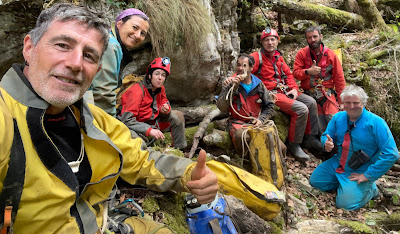Cavidad pequeña, que nos ha dado muchas alegrías, formaciones, grandes galerías, pozos y restos de osos pardos.